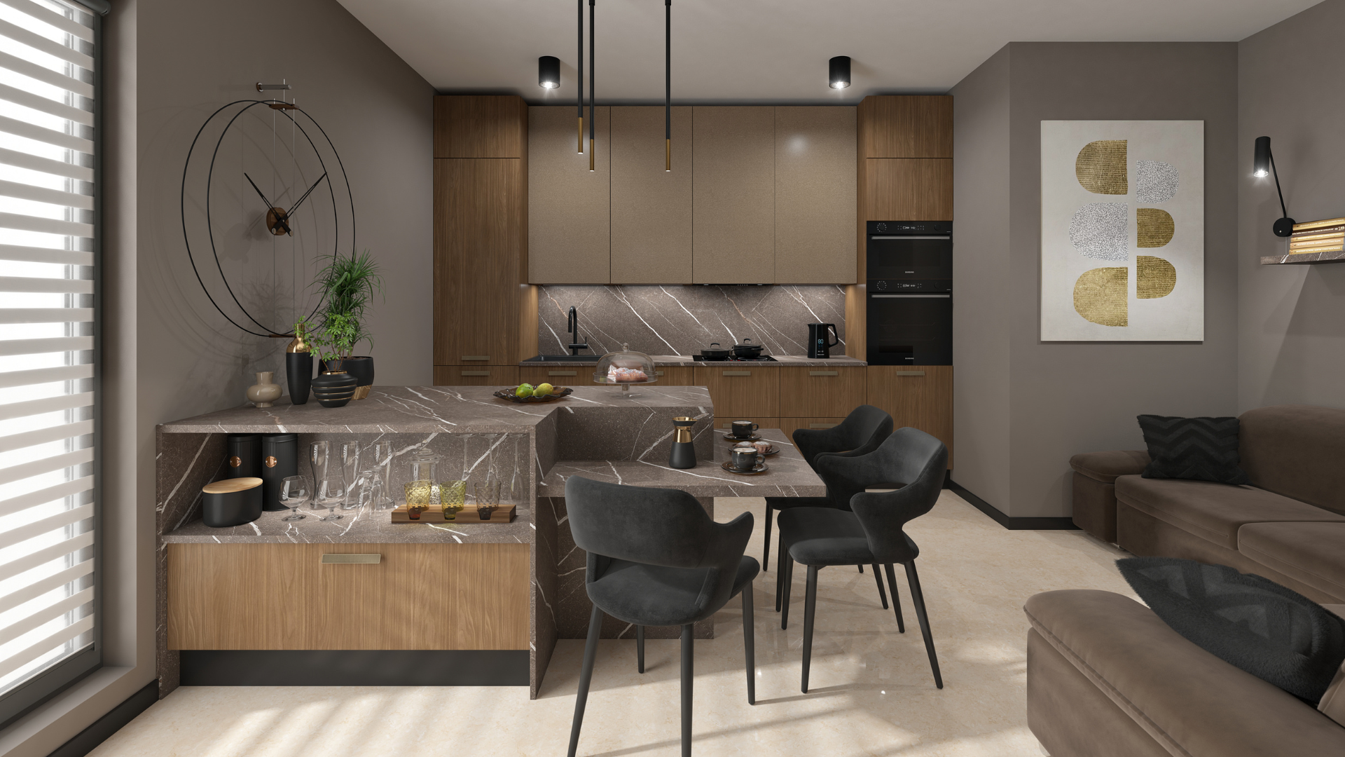 Zabudowa została zaprojektowana tak, by była elastyczna, adaptowalna i ergonomiczna, odpowiadając na potrzeby współczesnego domu. Veluto łączy nowoczesną estetykę z praktycznymi rozwiązaniami, zapewniając wygodę codziennego użytkowania w otwartej, wielofunkcyjnej przestrzeni.