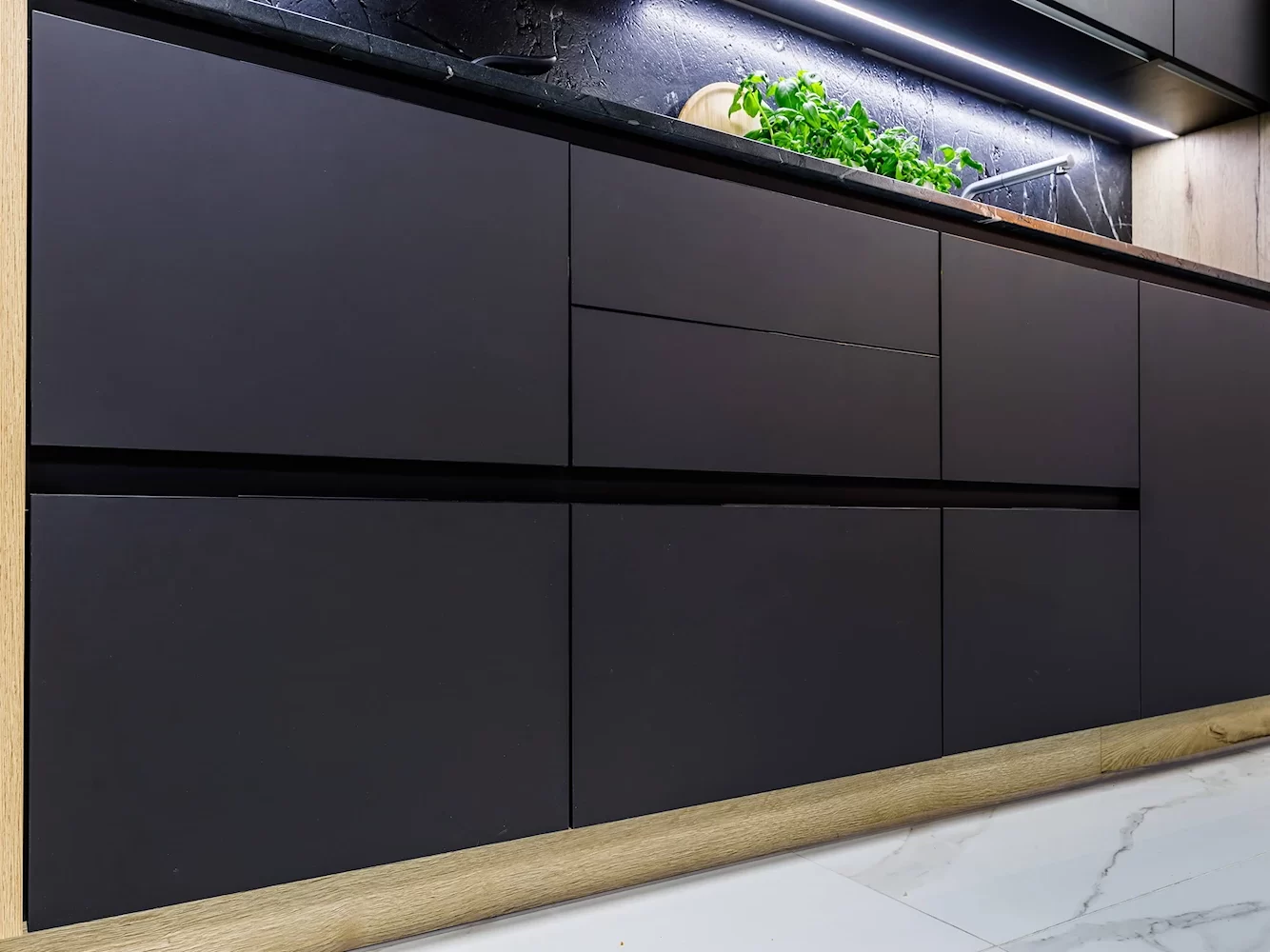 Oktawia w odcieniu szarego bazowego matu to projekt, który wpisuje się w estetykę spokoju, harmonii i ponadczasowej prostoty. Matowa powierzchnia w neutralnym szarym tonie tworzy idealne tło dla nowoczesnych wnętrz, pozwalając na swobodne łączenie kuchni z częścią jadalnianą czy dzienną.